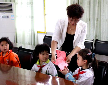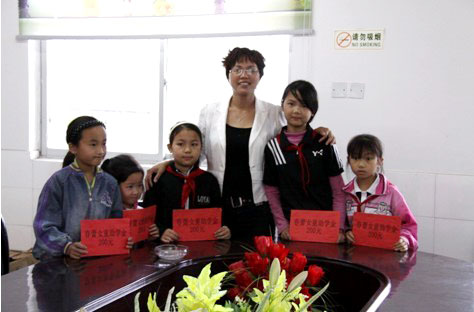 县妇联主席邓世娟为溪子口小学贫困生发放助学金