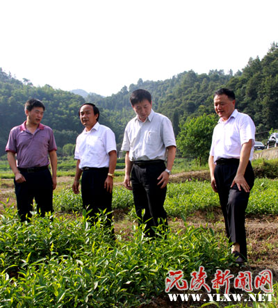 下午三点半,户外温度已经达到了35℃,但省农大刘强书记一行仍兴致勃勃视察了官庄镇银峰茶厂、干发茶厂、沐濯铺村优质茶苗基地。并听取了副县长张振华关于我县茶叶产业现状以及湖南农大“双百”科技富民工程示范基地和科技特派员工作开展情况的介绍。