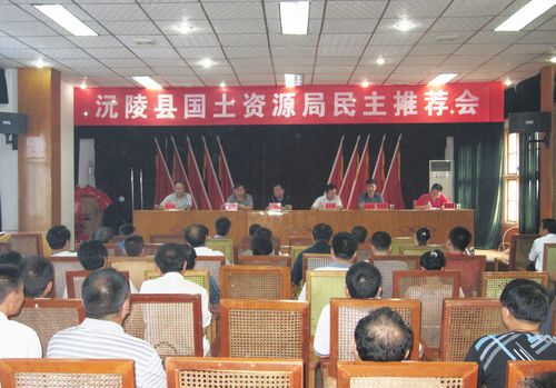 8月11日上午,在县国土资源局五楼会议室,召开了干部民主推荐会。到会的领导有市国土资源局副调研员董德成、市国土资源局人事科科长向初林、市纪检组副组长谢才斌,县组织部副部长杨辉、县纪委执法监察室主任瞿贻培,县国土资源局局长田学海及局领导班子、机关各股室及二级机构负责人和各乡(镇)所长参加了推荐会。