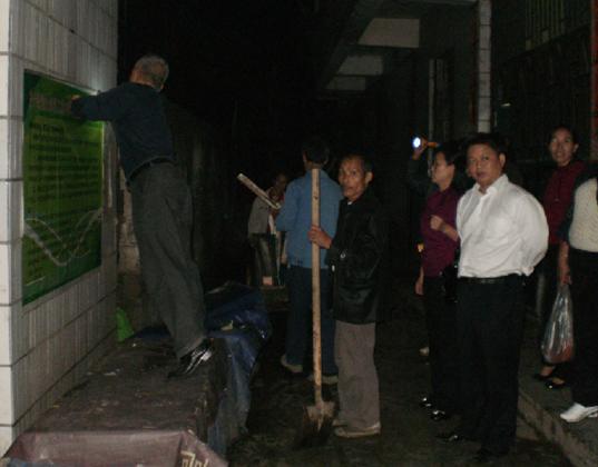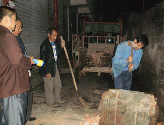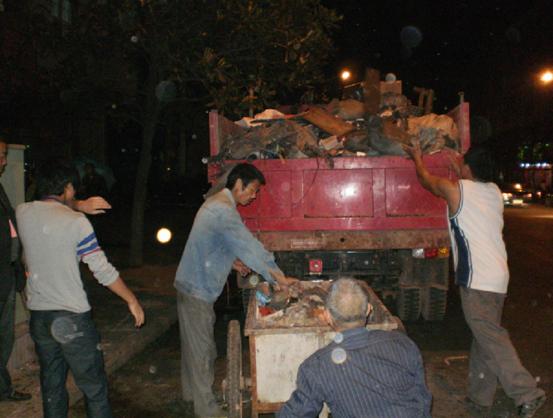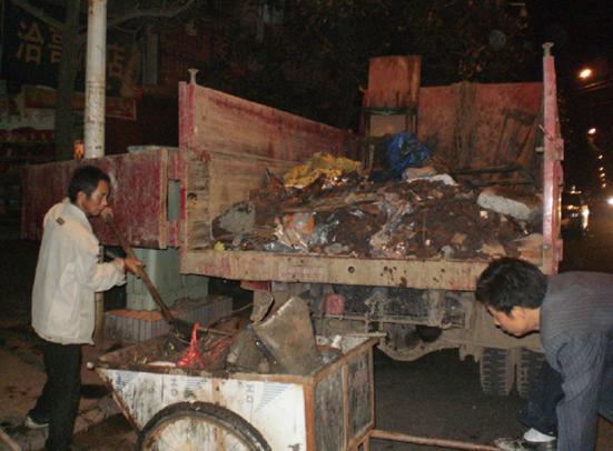 沅陵新闻网讯 为治理市场环境卫生,迎接“国卫”复查验收,10月15日晚,当城南临时菜市场散场后,沅陵镇主要领导和城建管理所全体人员集中在市场内,对市场的乱堆乱放、乱搭棚点和市场卫生进行了全面彻底的整治清理,并与工商局一道取缔了两家非法使用松香的活禽宰杀点。