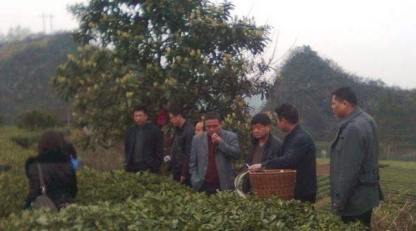 参观完基地后,在古阳河茶业有限公司品尝了今年的第一批新茶后,两地领导随即进行了座谈。 座谈会由古丈县人民政府副县长郑利红主持,古丈县政府调研员田金龙、政府办主任郑良武、县质监局、工商局、茶叶局等单位参加了座谈会。县质监局对“古丈毛尖”地理标志保护获批的经过做了详尽而具体的汇报,工商局就古丈大力推进商标战略,推进品牌兴县,申报“古丈毛尖”国家驰名商标所开展的工作做了详细介绍;茶叶局就“古丈毛尖”地理标志保护及“古丈毛尖”地理证明商标使用细则做了专门介绍。