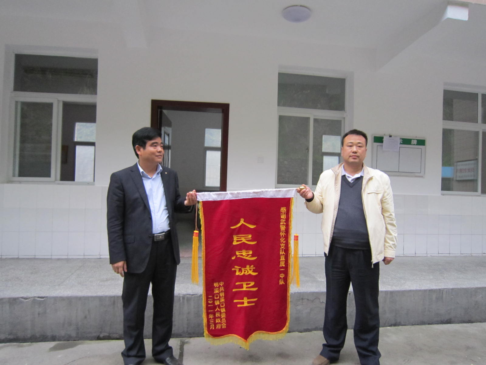 4月11日,明溪口镇政府将一面写有“人民忠诚卫士”的锦旗送到武警凤滩中队驻地表达感谢。