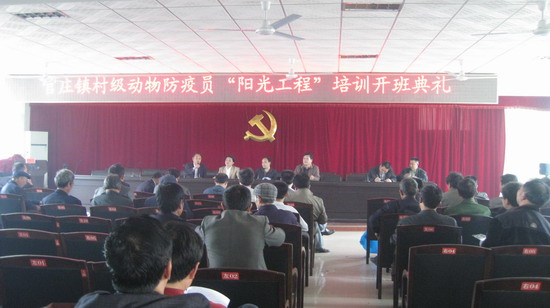 4月15日,官庄镇召开了村级动物防疫员了“阳光工程”培训开班典礼暨重大动物疫病“春防”工作总结会议。各村居动物防疫员参加了会议,为了确保官庄镇不发重大动物疫病,官庄人民吃上“放行肉”,县“阳光工程办特聘请树亿星职业技术学院高级兽医师来我镇授课。县畜牧水产局党组成员徐朝用参加了会议,并指出春季期间,为动物疫病的高发期,各单位要做好动物疫病的防范工作。