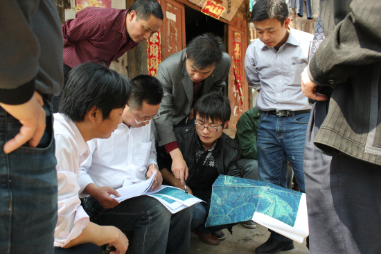 沅陵新闻网讯 4月15日,县国土局、农业局组成的联合验收组,深入大合坪乡开展农村土地权确阶段性成果验收工作,验收组一行走进机关细心查阅图文资料,走出机关仔细勘察界址现场。