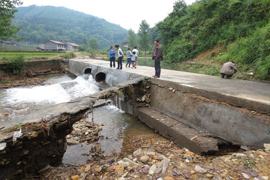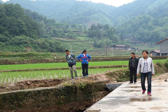 乡长钟群英查看受灾点