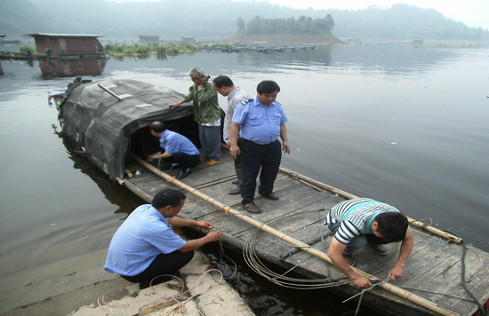 工作人员查扣电鱼船实现可持续发展