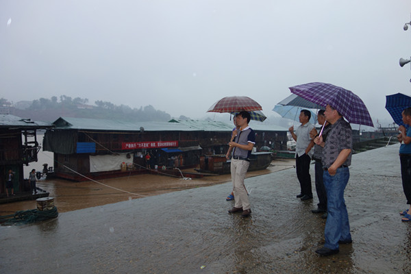 沅陵新闻网讯 时值汛期,为确保码头汛期水上安全和广大船舶、船员及人民群众的生命财产安全,7月16日上午,沅陵镇安监办工作人员冒雨对镇辖范围内的各个码头进行了现场巡查。当得知水位已达107米,即将接近108米的警戒水位时,工作人员立即采取行动,根据水情,现场对各船舶码头进行了检查,并向船舶负责人明确了船舶航行注意事项。同时,在码头签单员的协同下,对安全隐患进行了排查,并要求签单员坚守岗位,及时上报汛期情况,保障好登船乘客的人身安全。