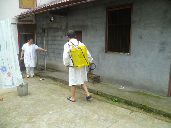 7月16日,该乡组织卫生院、公卫所工作人员分别对幸福、明中、桐车坪、池坪、官坪等重灾村开展清洁、消毒工作。7月18日,分管卫生工作副乡长宋利华带领县疾控中心派出的工作组以及卫生院、公卫所医务人员背着喷雾器和消毒药品,对明中村古民居受灾户住所进行消毒防疫。同时,该乡卫生院和公卫所派出专门防疫组,联合村卫生室积极开展卫生防疫工作。