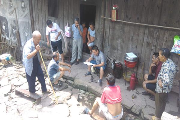 干部上门给群众宣传低保政策