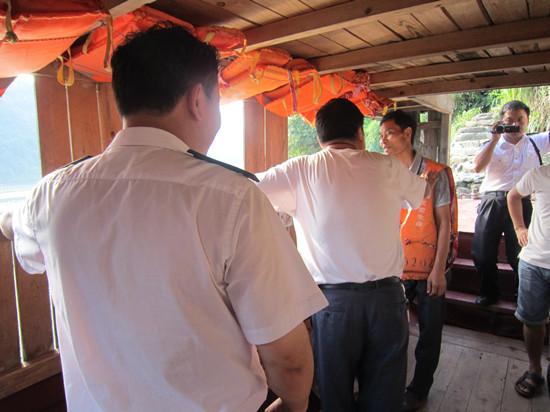 在检查过程中,市县海事处联合检查组现场查看了该镇仓库码头、尤溪口的“三线一牌”是否齐全,客渡船的各项救生设施,安全警示标识等安全措施是否配备齐全。