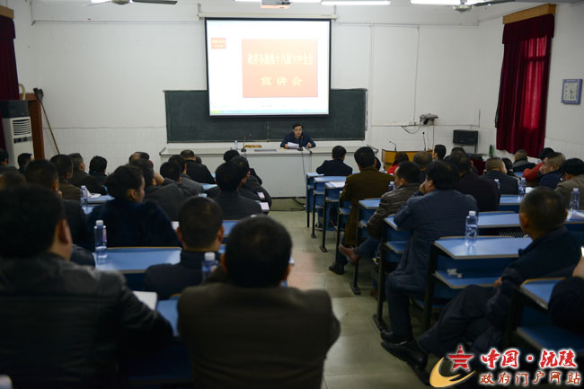1月9日下午,县政府办战线25个正科级单位班子成员、离退休党员代表100多人齐聚县委党校阶梯教室,学习听取党的十八届六中全会、省市县党代会精神和县人大政协“两会”精神。