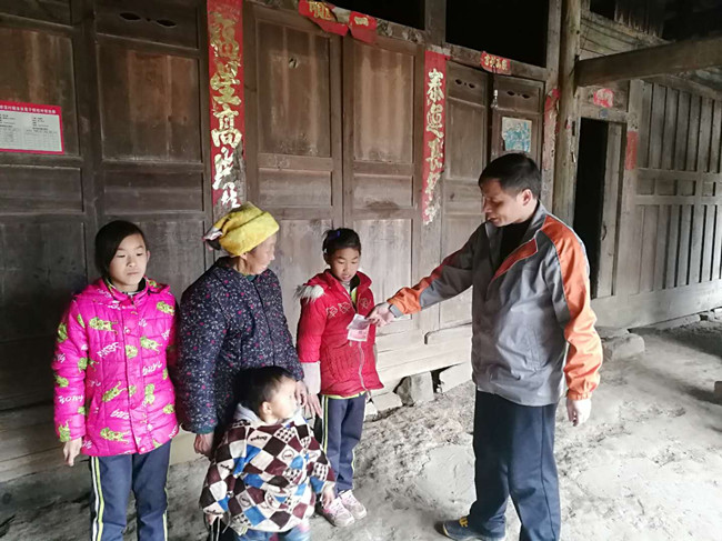 在修溪村,雷明宝对“一户一档”、村级台帐和第一书记落实当前扶贫工作任务进行了检查。并分别走访了颜华兴、颜克顺、颜克灯、张在齐,颜章树等贫困户。在贫困户颜克灯家中,雷明宝重点寻问了教育帮扶资金的落实情况,并为留守的4名儿童送上了400元助学金,鼓励她们好好学习。在颜克顺家中,了解到其妻产子花费医疗费5000余元,住院分娩农合只补偿1600元时,马上帮他们在社会扶贫网发布医疗救助需求,并通过社会扶贫APP捐赠100元。