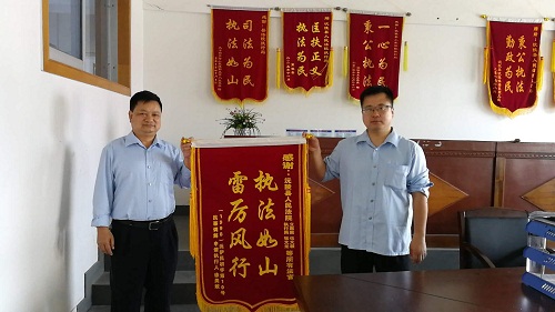 第二天,当事人送来了致谢锦旗,说是万万没想到过了20年来法院申请强制执行仍然有效,并且仅用1天就全部执结到位了,这面“雷厉风行,执法如山”的锦旗名至实归。
