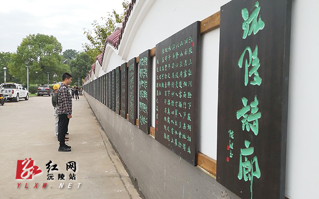 “沅陵诗廊”由本地书法协会会员免费书写、篆刻,集行、隶、篆、草等字体于一墙,显示出沅陵书法家的实力,展示出沅陵深厚的文化底蕴。