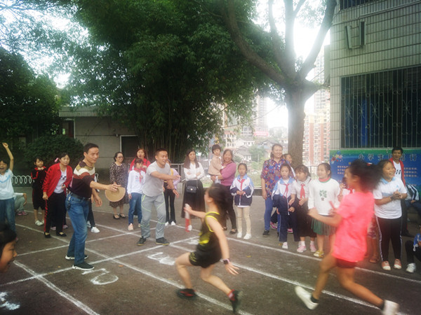 活动由70个中队组队参加,分年级比赛;各中队派男女家长各一名与本班学生进行迎面接力,比亲子默契和大家的运动协调能力。比赛开始,校园欢腾,由女家长一路领跑,把接力棒交给学生,学生发挥顽强拼搏,最后由男家长冲刺。比赛在欢乐热烈的气氛中结束。