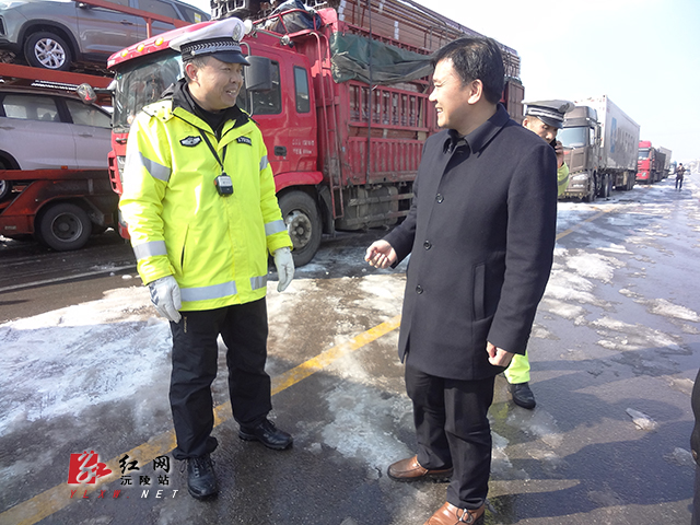 “往吉首方向高速出现交通情况,省领导要求沅陵、桃源等沿线出口做好车辆分流,减缓高速涌堵压力!”县交警大队长熊良生说。