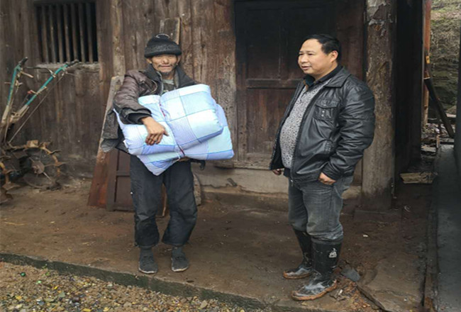 经过近三个小时的坚苦工作,原本已被各类垃圾杂物包围成一座孤岛的房屋终于有了一个家的样子,大伙的额头也挂满了颗颗汗珠。当一切整理完毕,驻村工作队为张小华送去了崭新的棉被,村主任为张小华整理好床铺,结对帮扶责任人还专程为张小华送去了一袋大米。