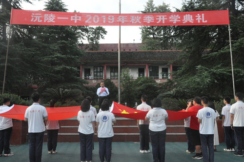 沅陵新闻网讯 9月2日早上,沅陵一中隆重举行2019年秋季开学典礼。 庄严的升旗仪式后,学校校长发表主题为《用青春铺路,让梦想延伸》的致辞,希望全校师生积极行动起来,用勤奋和汗水,用智慧和热情,团结一心,扎实工作,勤奋学习,共同创造沅陵一中美好的明天。过去的一年,全体一中人锐意进取,齐心协力,一心一意谋发展,聚精会神抓质量,高考教育教学质量继续领跑全市县市区一中,高二学业水平考试合格率高于省示范性高中平均水平。