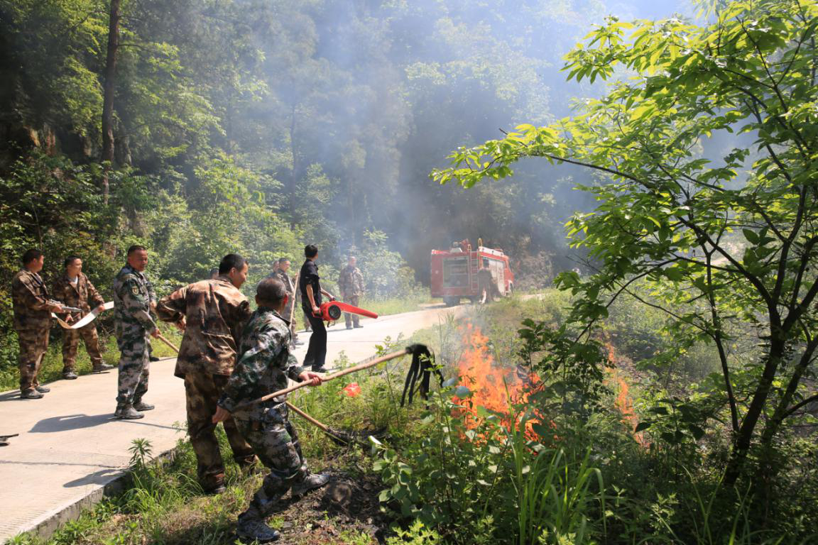 为检验工作人员的森林灭火能力,该乡出动一台消防车配合演练,救援队伍有序赶往失火地点,积极利用身边工具参与到灭火当中。