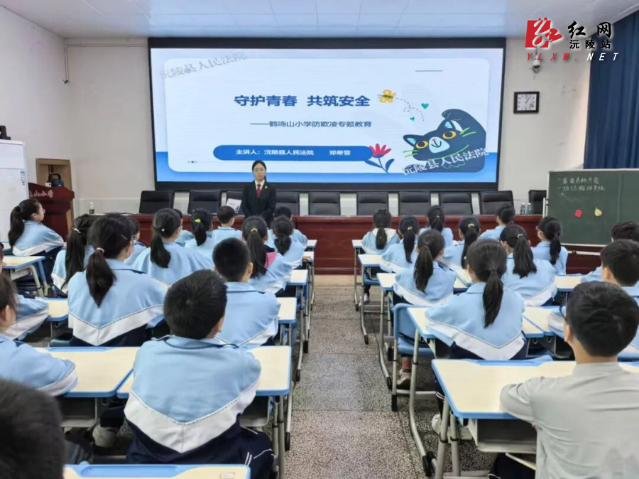 沅陵融媒讯 为进一步增强未成年人法治意识和自我保护能力,4月15日,沅陵县人民法院“沅法童行”普法宣讲队走进鹤鸣山小学,面向五年级学生开展“防性侵”“防欺凌”专题普法宣讲活动,以法治力量守护少年成长。